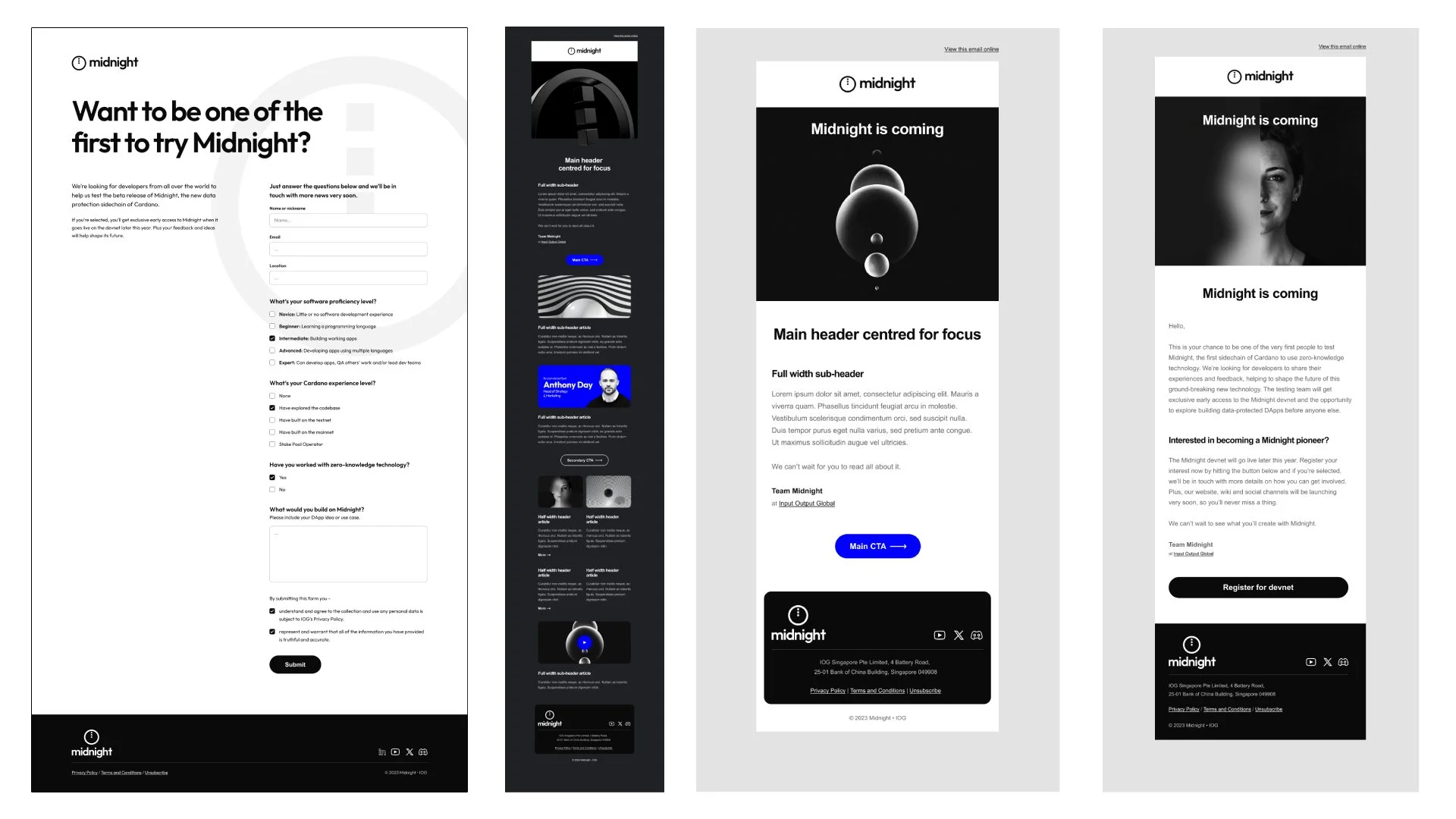 Midnight is IOG’s landmark data protection blockchain, designed to allow organisations to develop regulation-friendly applications using zero-knowledge technology. In close partnership with the Strategy Lead, I spearheaded the comprehensive marketing execution and technical build-out required to bring the Midnight brand to market, supporting its positioning as a pioneer in commercial data safeguard and user control.